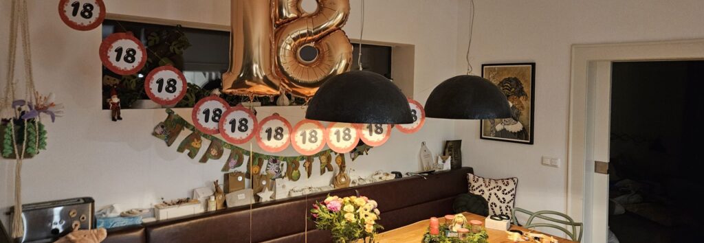 Wir haben gestern Abend noch alles vorbereitet, weil wir das immer so machen. Dieses Mal ist es aber was Besonderes, das Kind 1 ist nämlich seit heute kein Kind mehr – und dabei war sie doch neulich erst noch so klein. „Könnt ihr mir bitte das Auto geben, ich möchte als erstes mal alleine fahren!“ war der größte Wunsch. Also haben wir das Auto nach Ziegelstein gefahren, es abgestellt und sind wieder heim und haben dekoriert, gewartet und sind irgendwann ins Bett. Jetzt warten wir wieder. Irgendwann wird der volljährige Mitbewohner schon aufstehen und sich knuddeln lassen müssen. Wir lernen gerade mit der Brechstange was es heißt los zu lassen.
